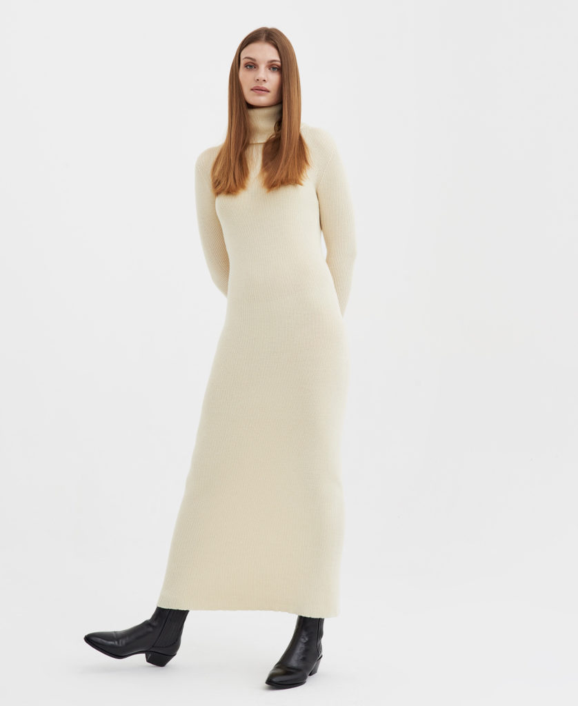 Sukienka swetrowa z wysokojakościowej wełny merino – miękkej, ciepłej, niegryzącej.